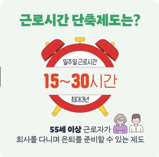 근로시간 단축제도는 55세 이상의 근로자가 주 15~30시간으로 근무시간을 줄이고,