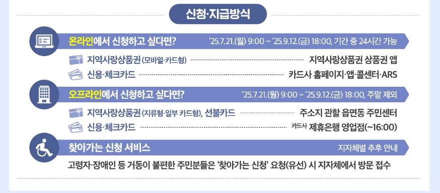 | 지역사랑상품권 앱 | 세대주 명의로 앱 접속 후 신청 | 모바일 또는 카드형 지역사랑상품권으로 지급. |