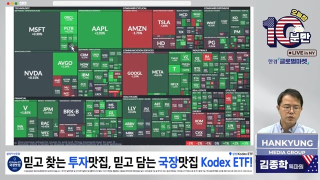 엔비디아와 마이크로소프트는 소폭 상승했지만, 테슬라, 아마존, 구글은 소폭 하락세를 보였습니다. 하지만 브로드컴이 2.76%, 오라클이 4.67% 상승하며 소프트웨어 섹터가 강세를 보였고, 은행주와 페이먼트 관련 종목들도 좋았다는 점이 눈에 띄네요!