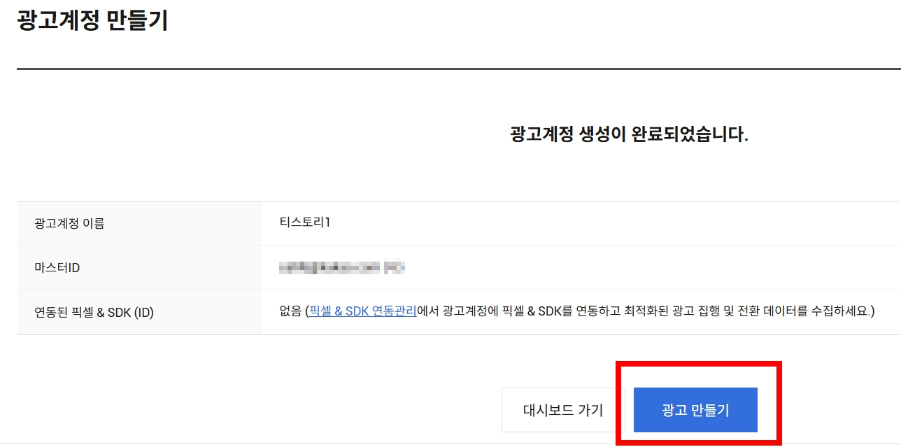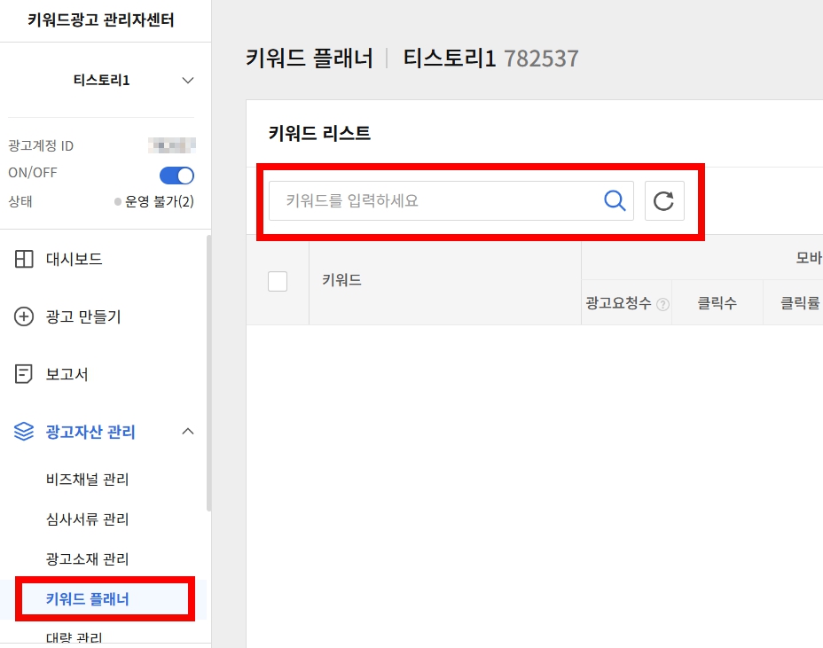 - 다시 광고 → 키워드 광고 → 생성된 광고 계정 클릭