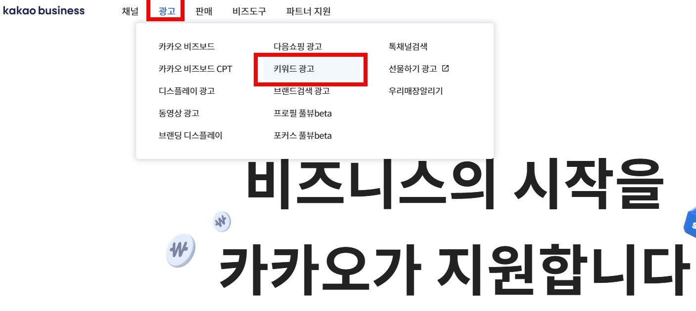 - 로그인 후 상단 탭에서 광고 → 키워드광고 클릭
