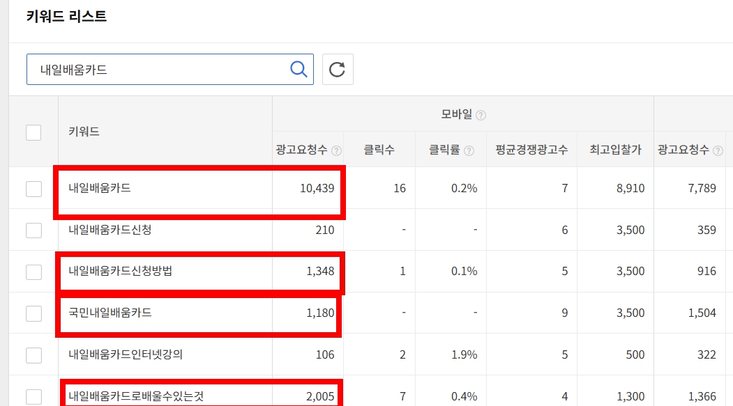 → 다음 키워드 플래너 기준으로 전략 수립해야 합니다.