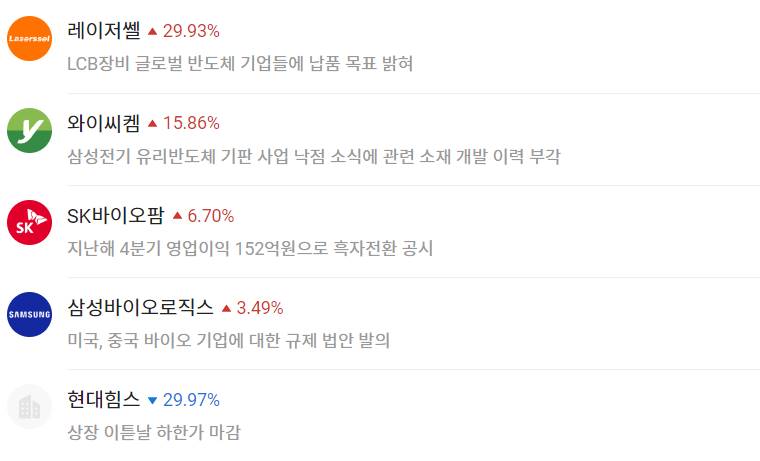 ● 삼성바이오는 작년 호실적 달성 및 미-중 갈등에 따른 반사이익 기대감에 상승했습니다.
